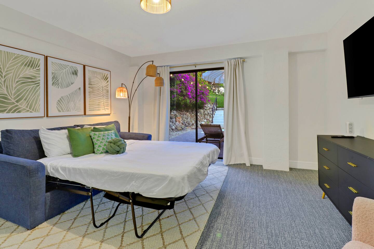 • Bedroom 4 (In-Law Suite) – Queen bed, pull-out couch, ensuite bathroom (shower only), kitchenette, and private entrance
