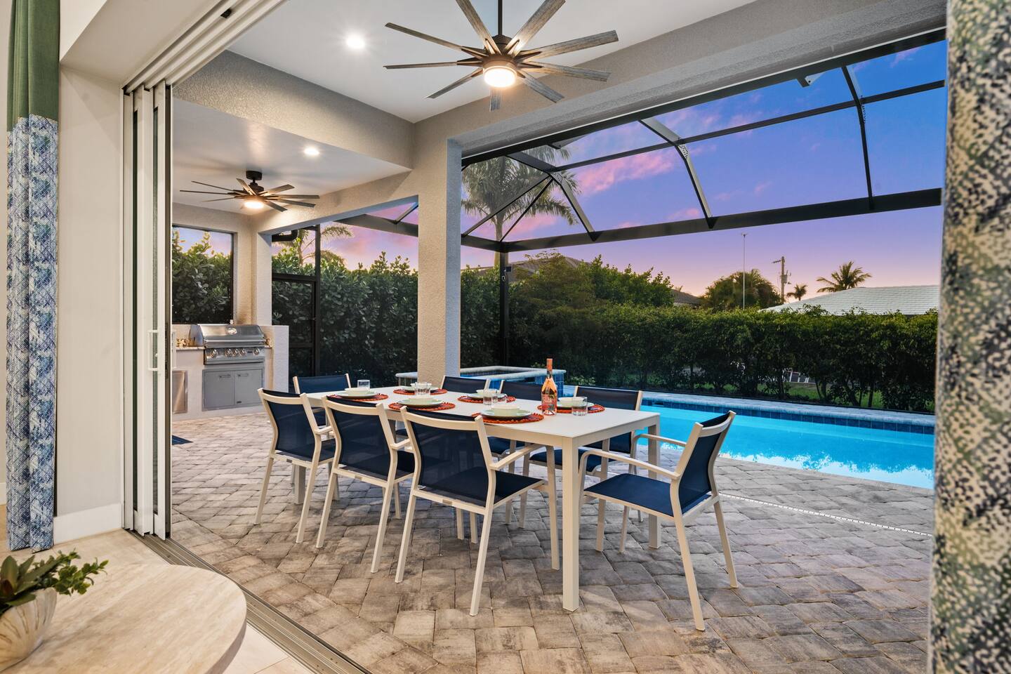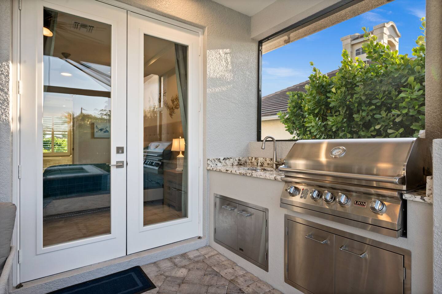 🍔 Screened-in lanai with custom-made BBQ grill station