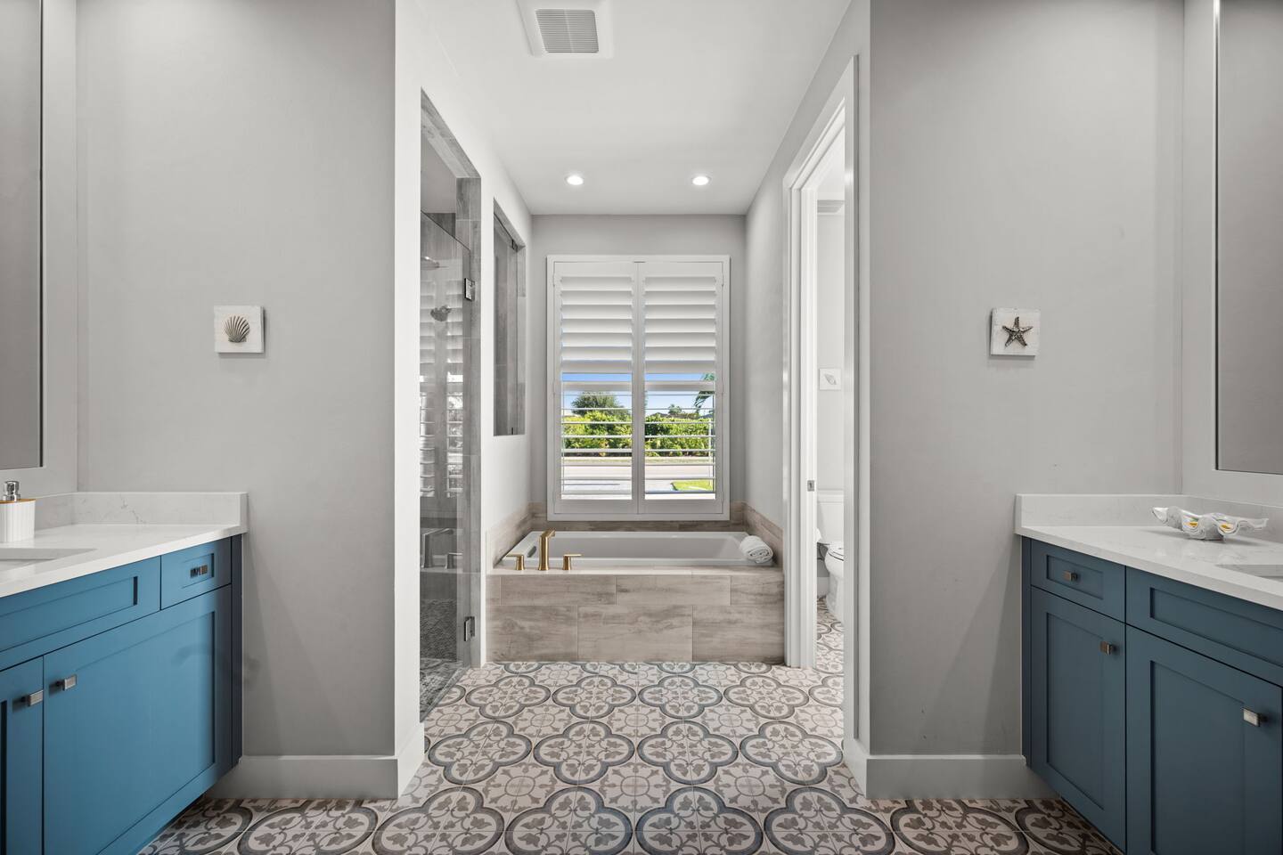 - Bedroom 1 (Master) – King bed + en suite bathroom with spa bath, walk-in shower, dual sinks & walk-in closets