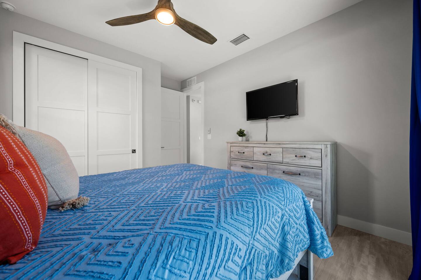 - Bedroom 4 – Queen bed + access to hallway bathroom with walk-in shower