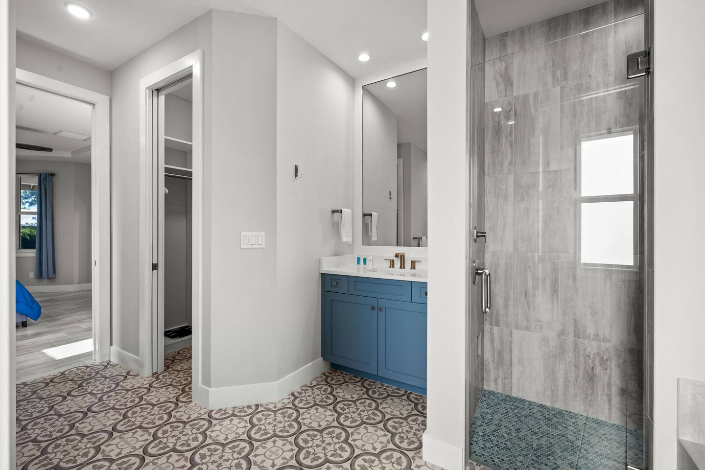- Bedroom 2 – Bunk bed (twin over full) + access to hallway bathroom with walk-in shower