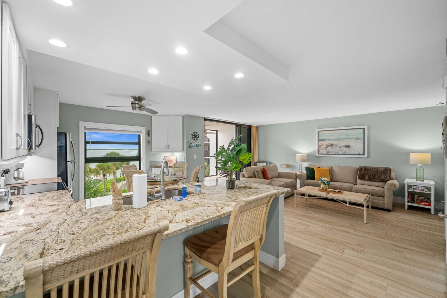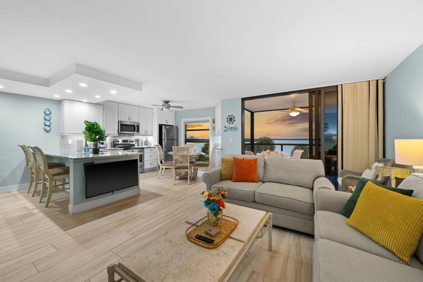 Wake up to breathtaking sunrises 🌅 over the bay and watch dolphins 🐬 swim by from your balcony! This newly remodeled waterfront condo is designed for relaxation and adventure—enjoy a fully stocked kitchen 🍳, chic furnishings, and access to resort-style amenities. Hosted by Calm Cove Rentals.